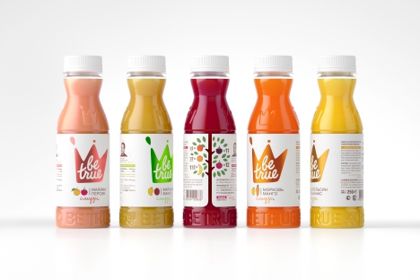 Агентство STUDIOIN провело ребрендинг смузи BE TRUE. До этого у продукта был дизайн, скопированный с мирового бренда. Перед агентством стояла задача сделать смузи узнаваемым российским продуктом.