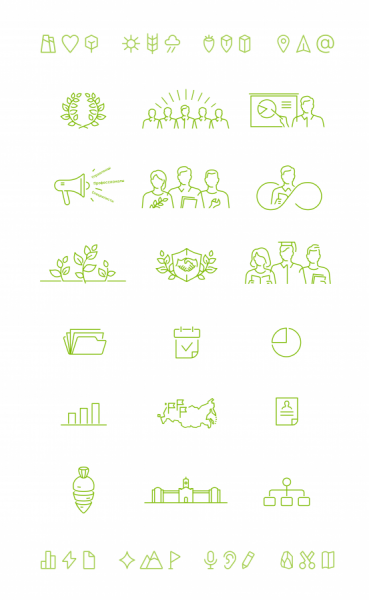 Семейства отрисованных пиктограмм помогают пользователям лучше ориентироваться на сайте, выполняя функции дополнительных иллюстраций.