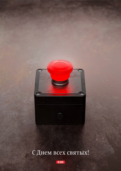 «Студия Артемия Лебедева» представила креатив к Хэллоуину — на тематическом плакате дизайнеры изобразили «красную кнопку», тревожный символ 2022 года. Как отметили креаторы, леденящая душу открытка призвана всех как следует напугать.