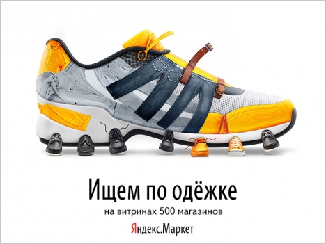 Рекламная кампания «Яндекс-маркета», разработанная студией Артемия Лебедева, уже запущена на портале Яндекс. Она посвящена одному из разделов сервиса – онлайн-гардеробу, который появился только в сентябре прошлого года. С его помощью каждый пользователь может подобрать себе одежду по размеру и цвету из более чем 500 специализированных магазинов.