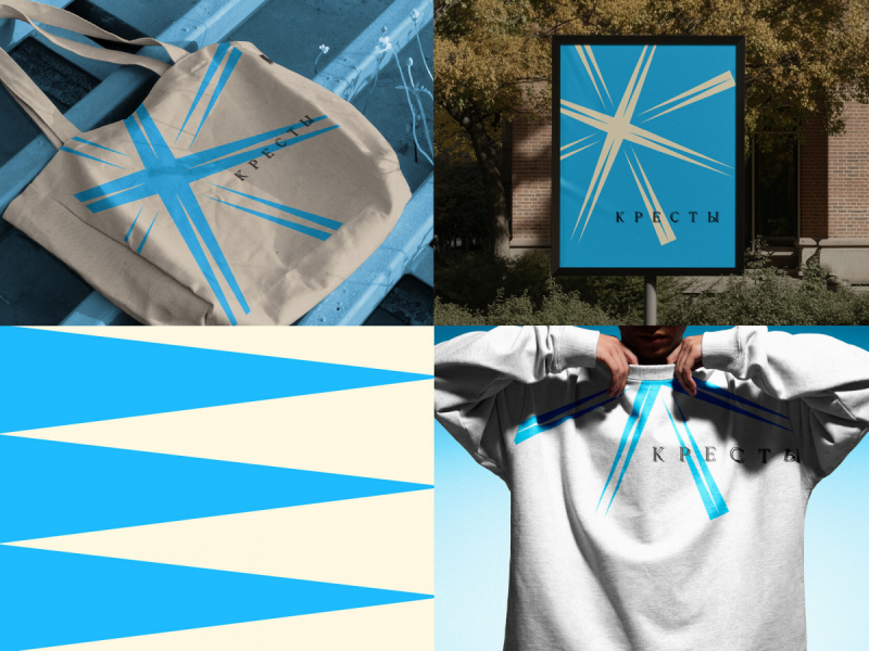 Первый вариант построен на образе двух наложенных крестов, формирующих световое сияние как символ обретенной свободы. Этот мотив отсылает к архитектурным особенностям комплекса, в частности, к звезде в подкупольном пространстве зданий. Двойственность названия «Кресты» также отражена в шрифтовом решении логотипа.