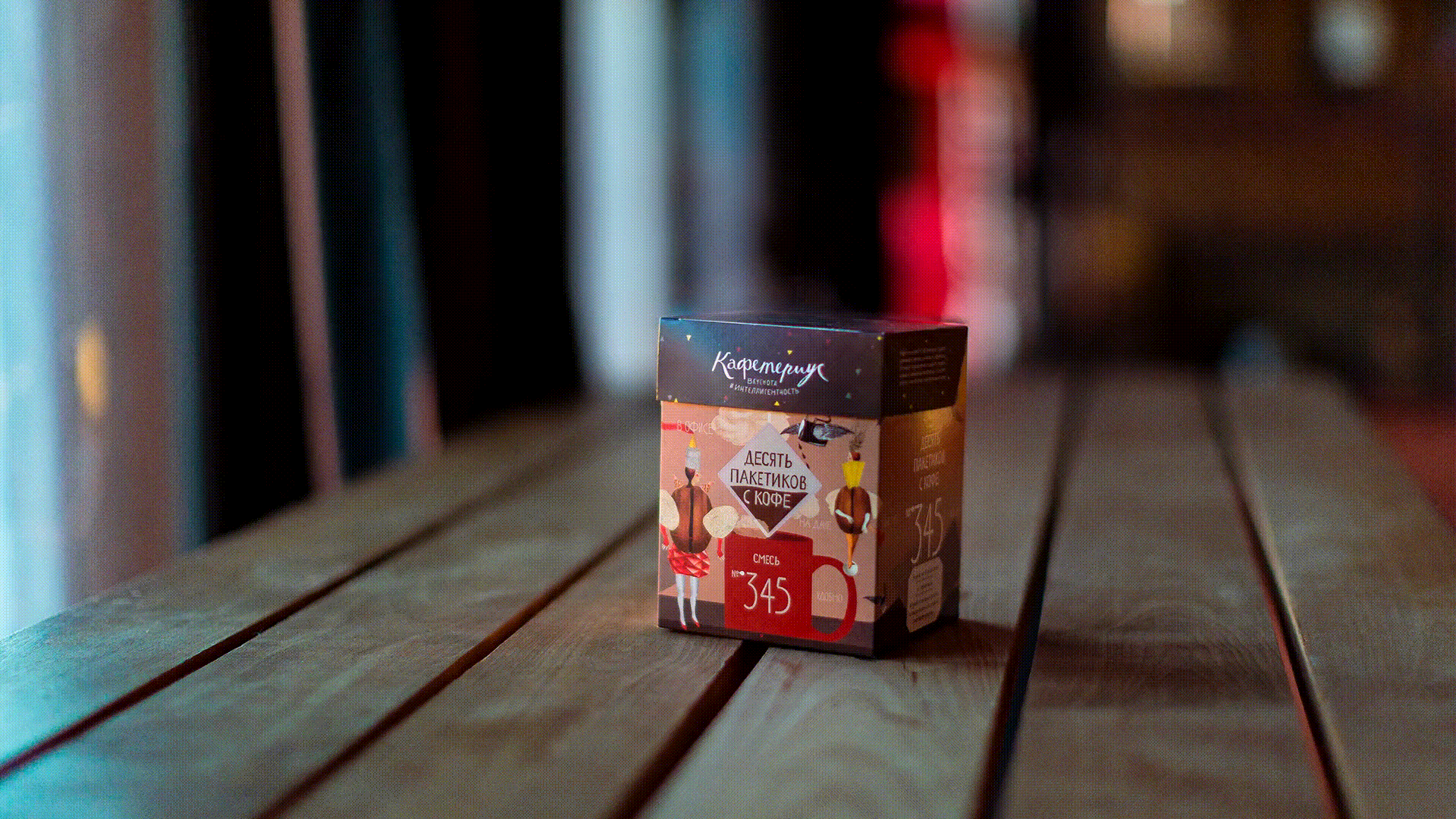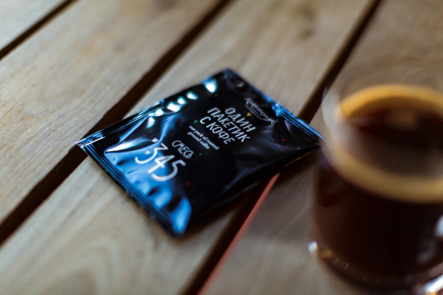 Сегодня Студия сообщила о том, что кофейни теперь производят «Смесь № 345» в заварочных пакетиках. В каждом пакетике — десять грамм свежеобжаренного молотого кофе (два сорта арабики из Бразилии и Эфиопии, взятые в равных пропорциях).