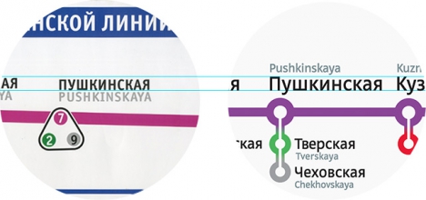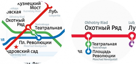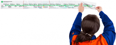 Студия Артемия Лебедева создала новые линейные схемы, которые располагаются над дверями и окнами в вагонах поезда московского метрополитена.