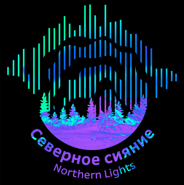 Также для туристических штампов креаторы придумали эмблему северного сияния — с неоновыми волнами и линиями на фоне леса.