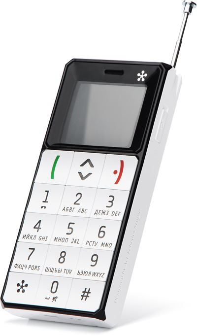 Дизайнеры студии Лебедева решили вернуться к формам и эргономике 90-х. Поэтому Just5 Brick и получился таким, каким получился, – угловатым, «кирпичистым», да еще и снабженным телескопической металлической антенной.