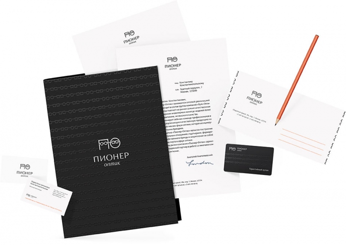 Студия Артемия Лебедева представила логотип и фирменный стиль компании-дистрибьютора очков «Пионер-оптик», название которой «моментально раскрывает суть деятельности компании».