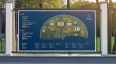 Студия Артемия Лебедева решила распределить здания по степени важности и оценить по специальной шкале. Чем больше социального веса у объекта, тем он чаще появляется на стендах и вывесках. На каждом стенде расположена информация только о трех объектах. Чем выше объект, тем он важнее.