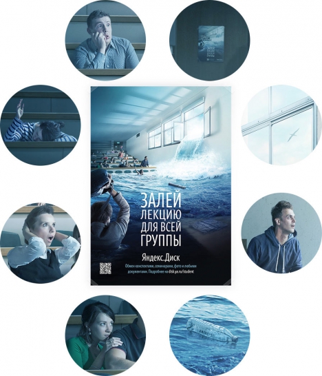 Студия Артемия Лебедева разработала рекламную кампанию для продвижения сервиса «Диск» интернет-компании Яндекс. Основой креативной концепции авторы избрали визуальное воплощение глагола «залить», используемого для обозначения загрузки данных в Сеть.