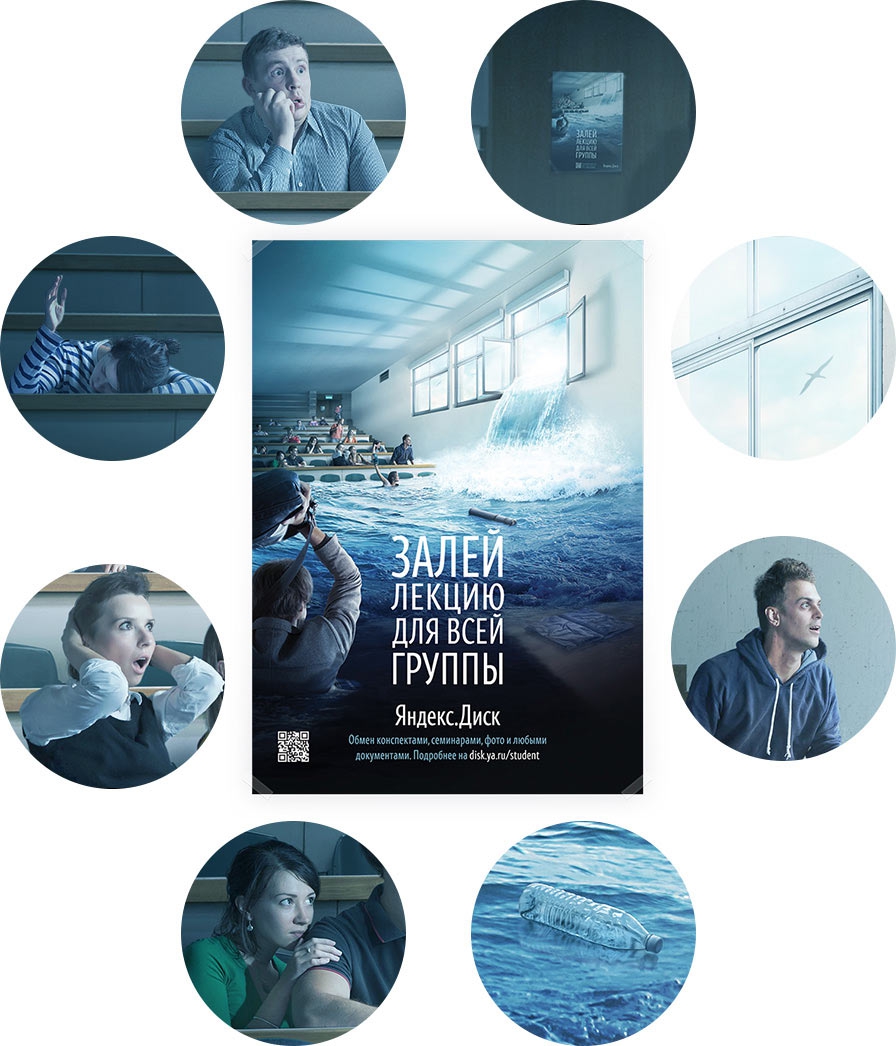 Целевой аудиторией креаторы избрали студентов: компания с помощью рекламы показывает, «Яндекс.Диск» отлично подходит для обмена конспектами, чертежами, аудиозаписями лекций, фотографиями одногруппников, видеороликами с вечеринок и другими материалами, интересными каждому студенту.