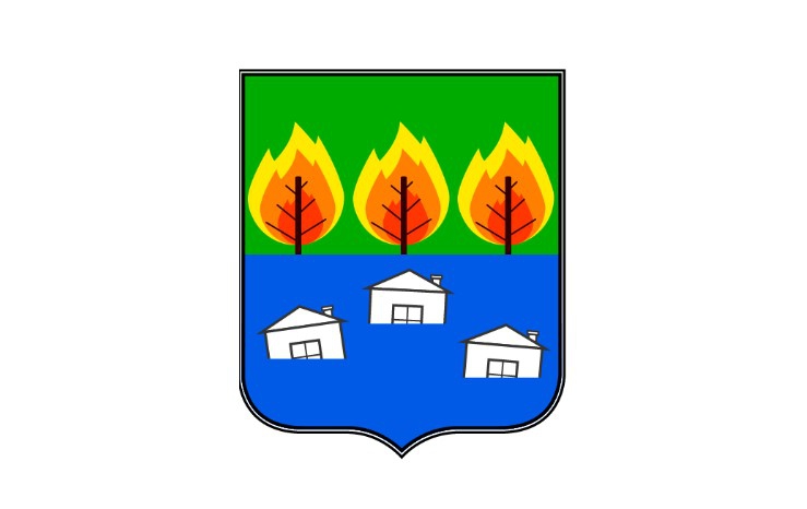На зеленом поле стоят три горящих дерева. Это символ лесных пожаров, которые бушевали в Иркутской области летом 2019 года.