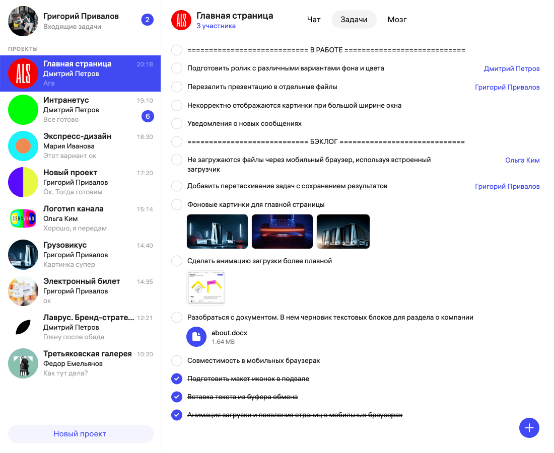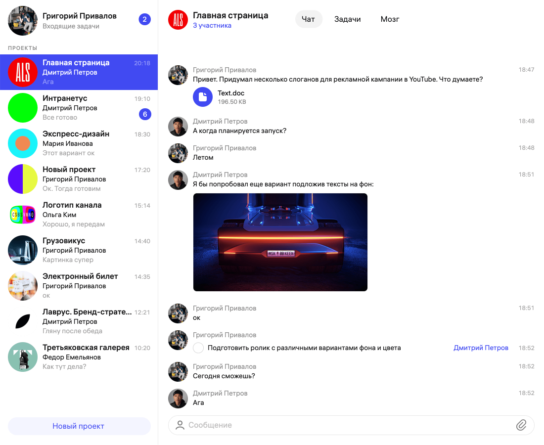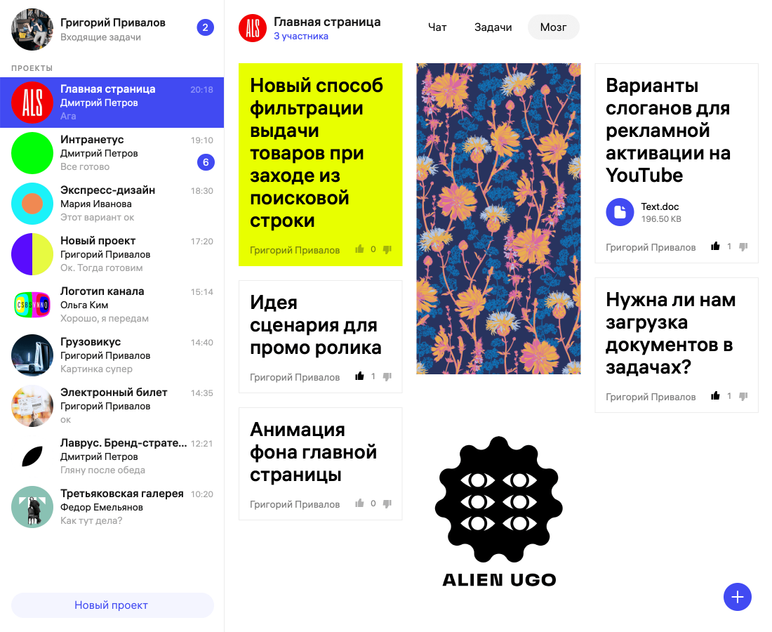 «Студия Артемия Лебедева» представила собственный мессенджер «Интранетус». Здесь есть чат, инструмент для постановки задач и назначения ответственных исполнителей, сервис для голосовой и видеосвязи.