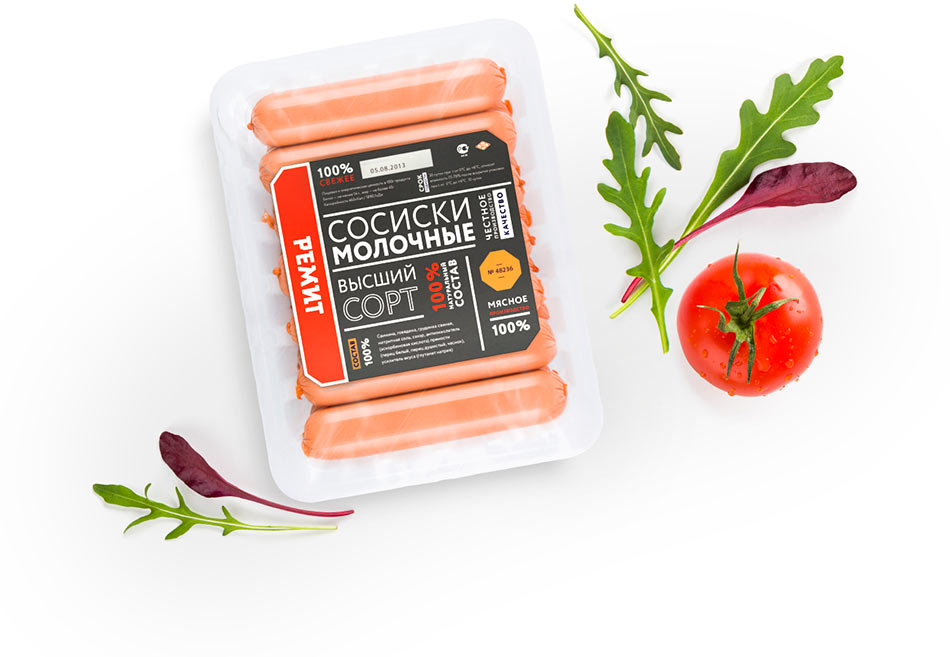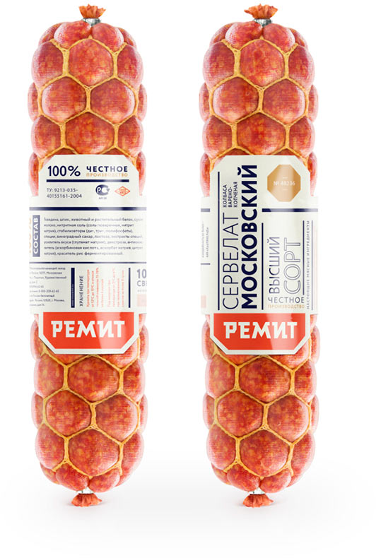 Студия Артемия Лебедева создала логотип и фирменный стиль для мясоперерабатывающего завода «Ремит», который работает с 2001 года и производит колбасные изделия, мясные деликатесы и полуфабрикаты.