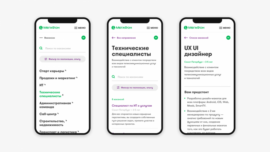 Многие знают «МегаФон» как оператора связи, но в компании занимаются рядом других направлений, среди которых — глобальные Big Data- и блокчейн-проекты, а также сотрудничество с ЖКХ. Чтобы раскрыть многогранность деятельности компании, на главной странице портала мы разместили информацию о различных проектах, а также основные преимущества работы для соискателей.