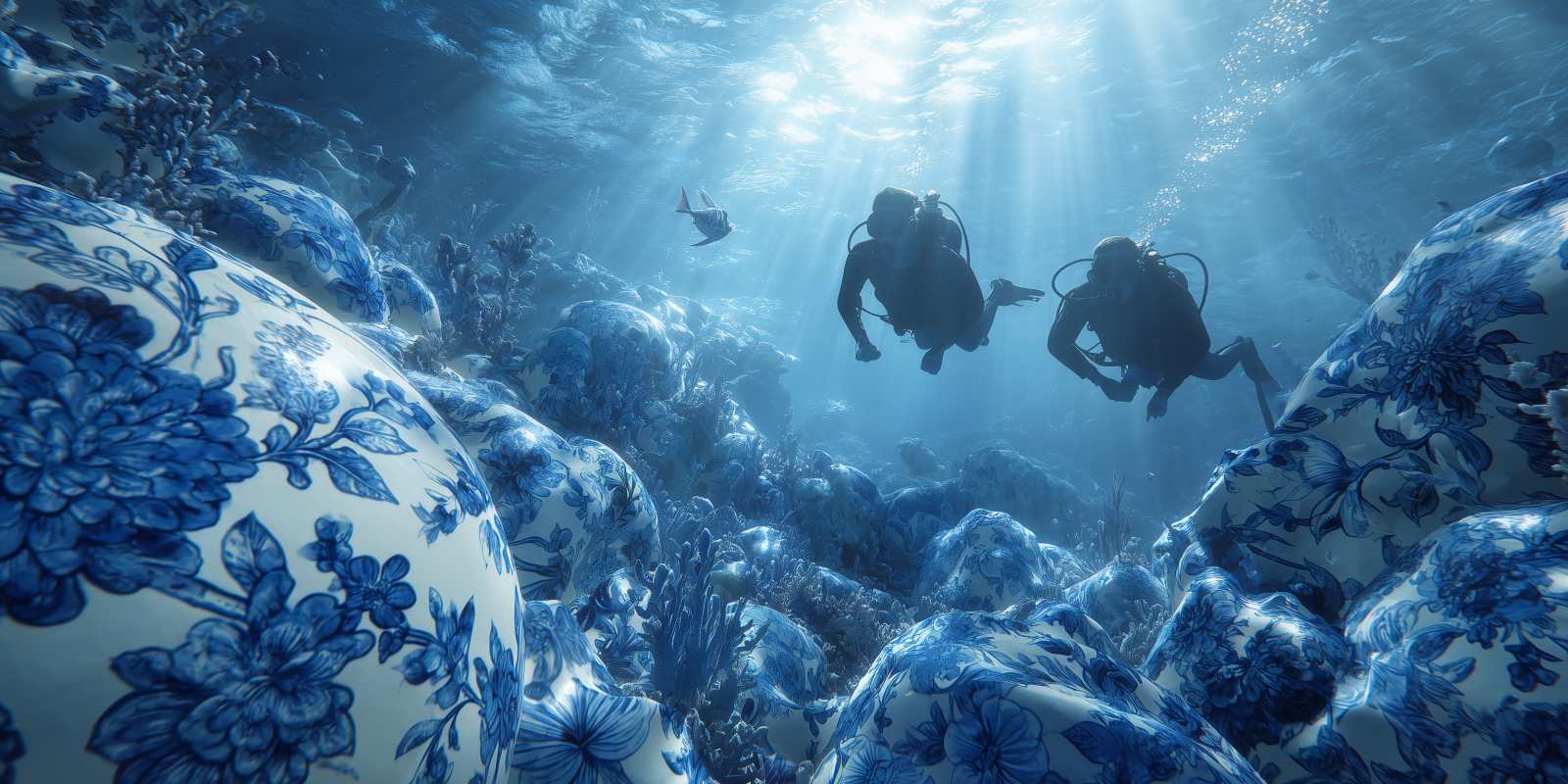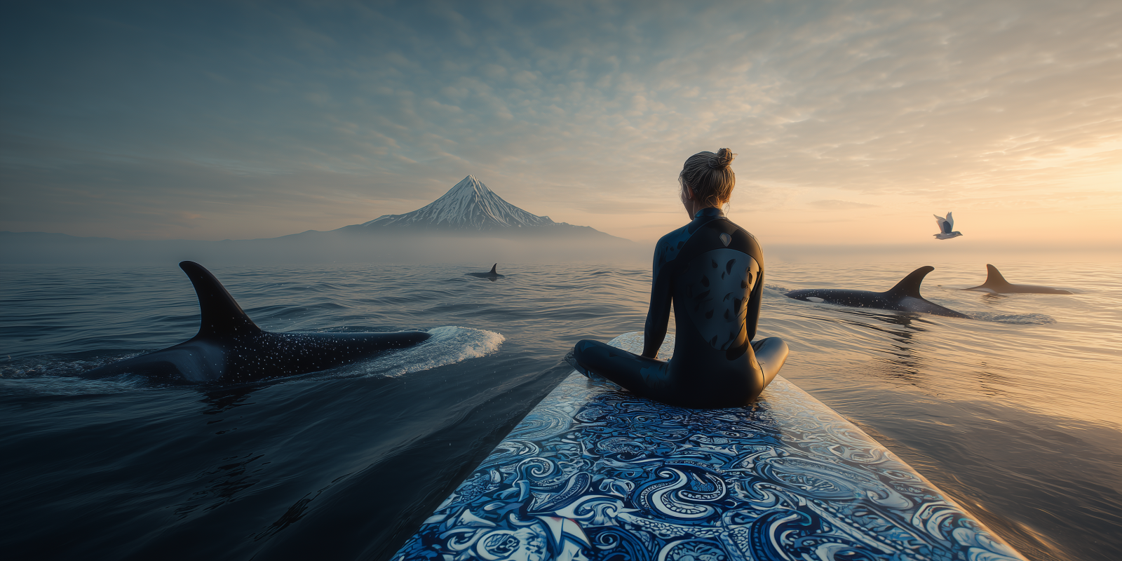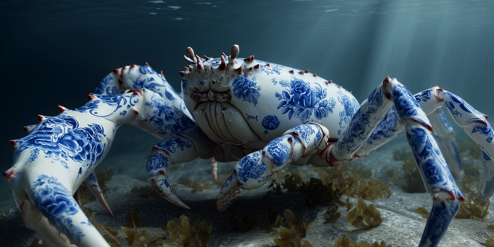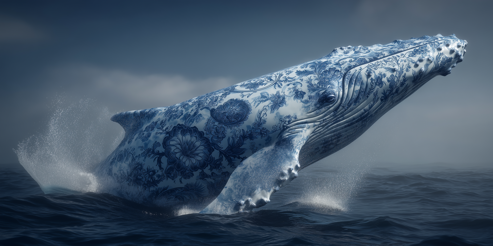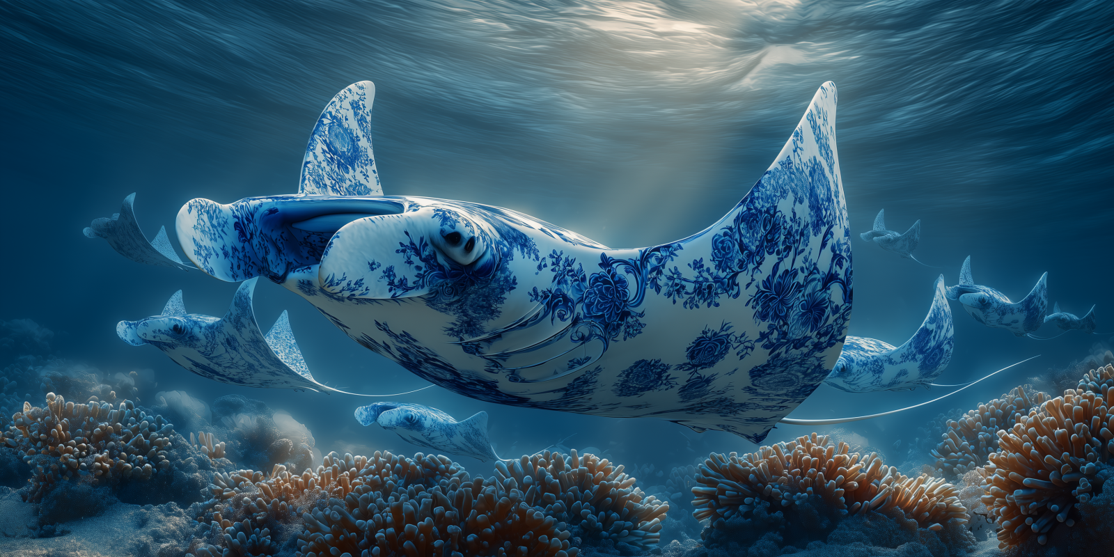 Я хотела создать не просто красивые кадры, а новый визуальный язык, через который Камчатка ощущается «больше, чем реальность». Мы сделали ставку на гжель как культурный код: бело-синие орнаменты легли на живых существ и природные формы, превратив океан в «живую роспись».