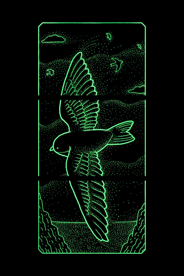 Чтобы увидеть иллюстрации, нужно открывать страницы постепенно: для того, чтобы фосфоресцирующий лак проявился и стал видимым, нужно, чтобы он успел накопить энергию.