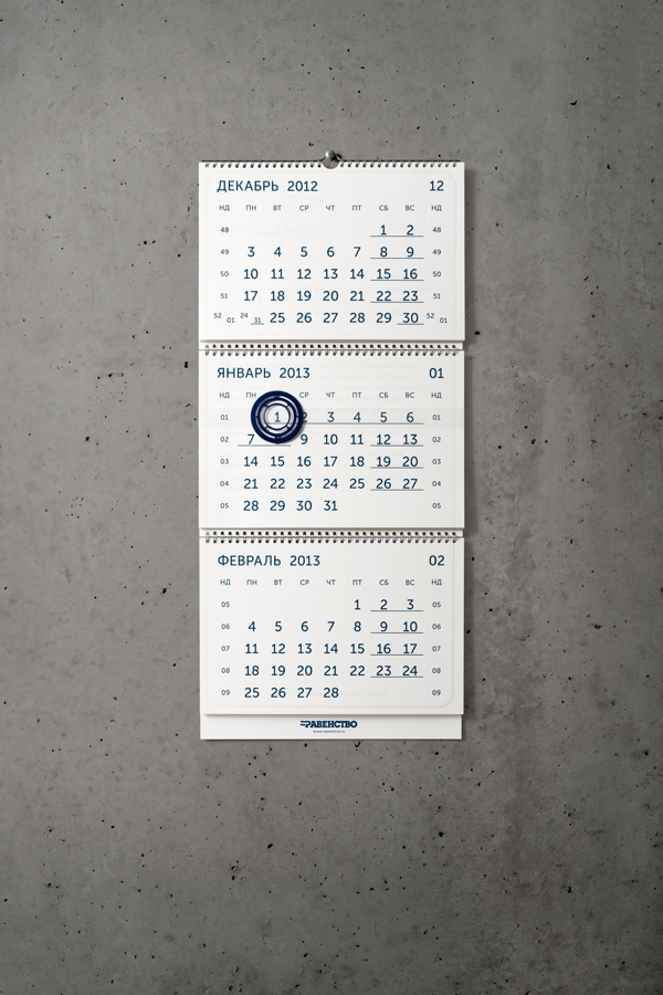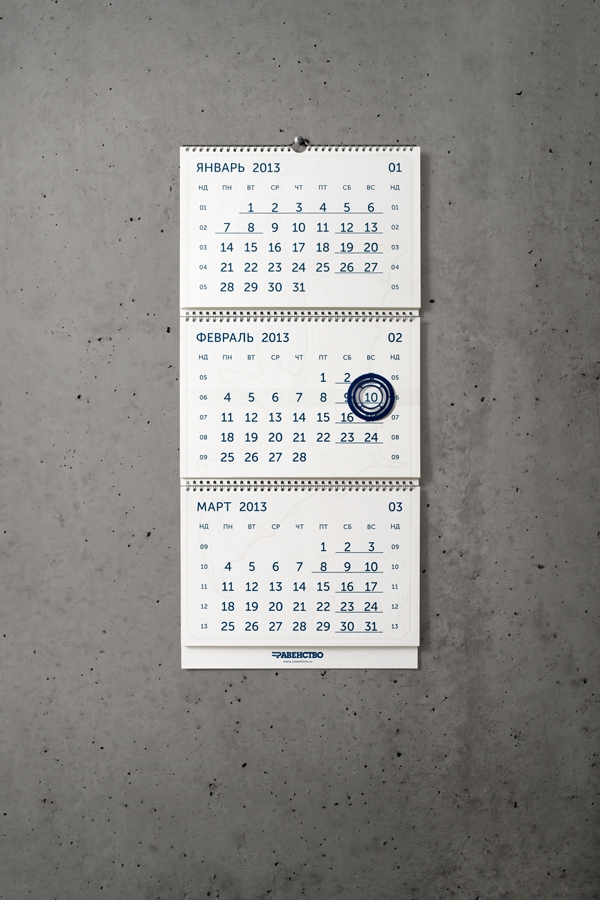 Украинские креаторы из студии графического дизайна Юрка Гуцуляка (Киев) разработали подарочный квартальный календарь для санкт-петербургской компании «Равенство», производителя радаров для Военно-морского флота России и береговой охраны.