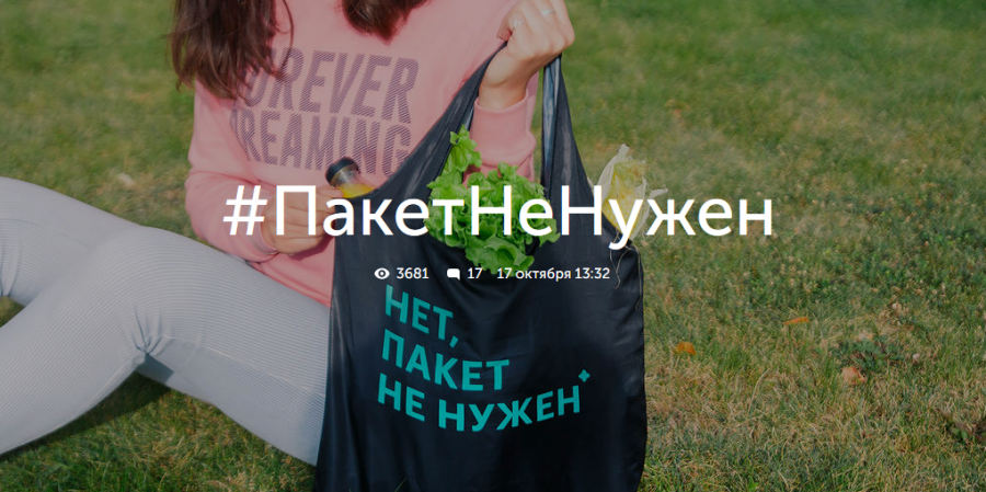 Среднее время использования пластикового пакета обычно не превышает 20 минут. После этого пакет оказывается на свалке, где он будет разлагаться несколько сотен лет. Клиентам «ВкусВилл» мы предлагаем не брать полиэтиленовый пакет, а сложить покупки в фирменную сумку РБК, отнести в ней продукты домой, а потом вернуть сумку при следующем визите в магазин.