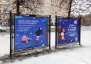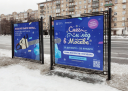 Для наружной рекламы мы решили использовать афишные стенды по всему городу. Для них сделали двойные макеты с разными зимними сценами и строчками из известных песен, которые тематически подвели к фестивалю.