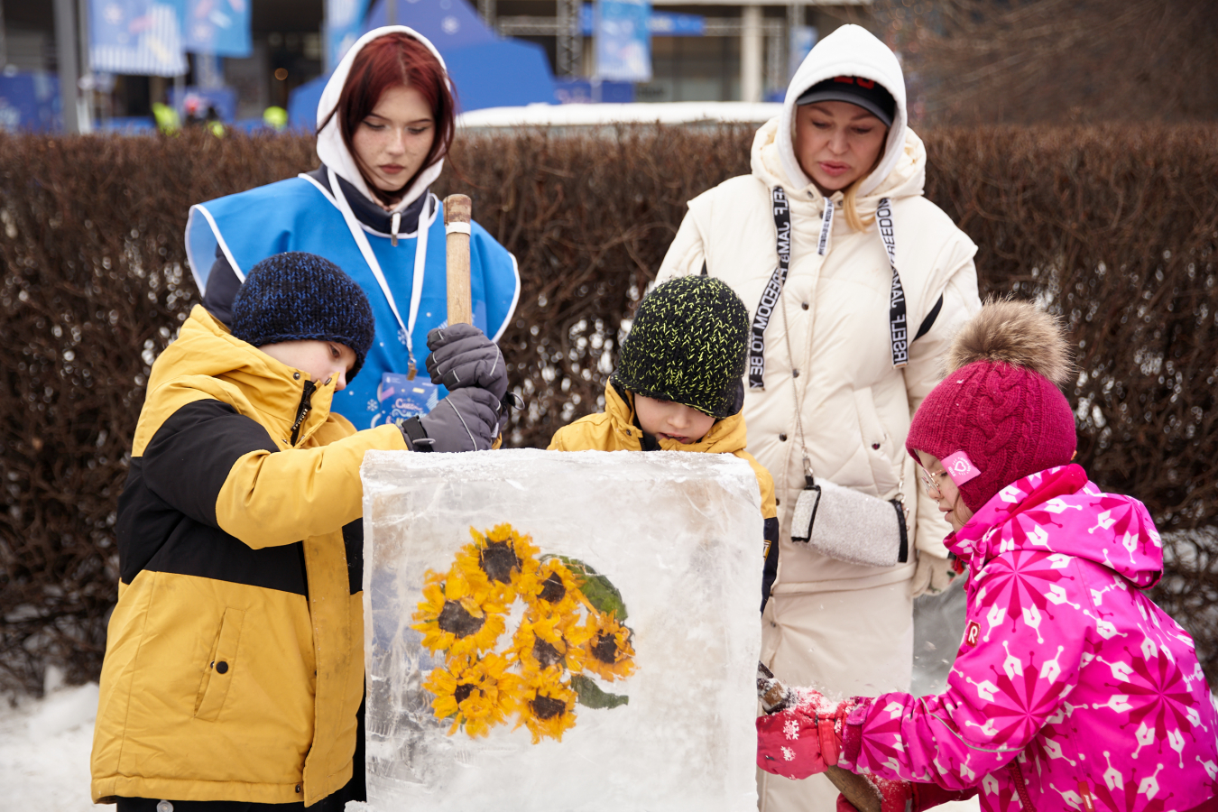 Для большего охвата наша команда подобрала блогеров и инфлюенсеров и сделала с ними спецпроекты. Актрисы и попечители благотворительных фондов Алла Довлатова и Екатерина Климова посетили фестиваль со своими подопечными. Вместе с детьми и профессиональными скульпторами они сделали ледяные символы фондов и рассказали об этом в своих соцсетях. Так подписчики смогли узнать о событии, а гости на площадке познакомиться с деятельностью фондов «Подсолнух» и «Дети-бабочки».