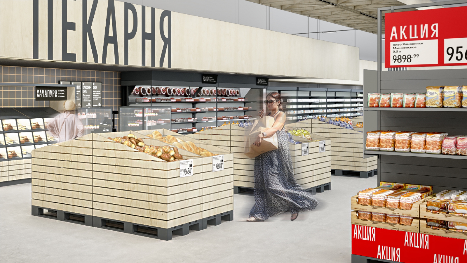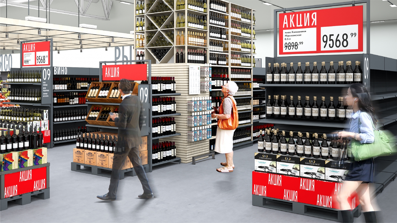 Задача стояла в создании обновлённой айдентики и дизайн-концепта гипермаркетов.
