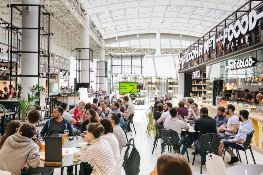Отвлекли от еды: «Мозгва» на открытии фудкорта MAREAT в ТЦ «АВИАПАРК»