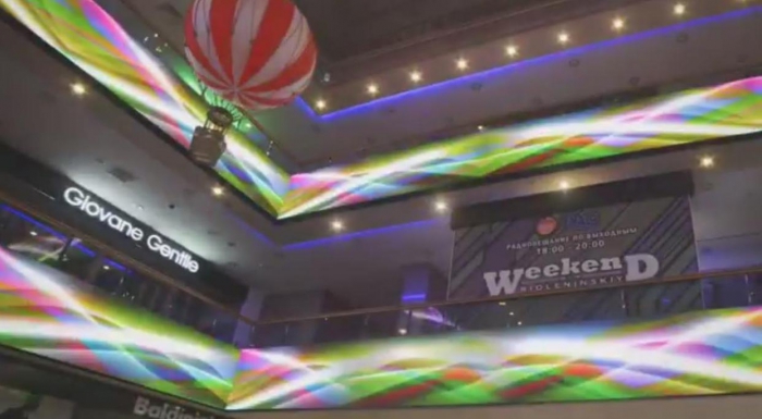 Коммуникационное агентство TASHIR Media совместно со своим партнером компанией Laima Electronics завершили монтаж светодиодных экранов на межэтажных перекрытиях атриума в торгово-развлекательном центре «РИО» на Ленинском проспекте.