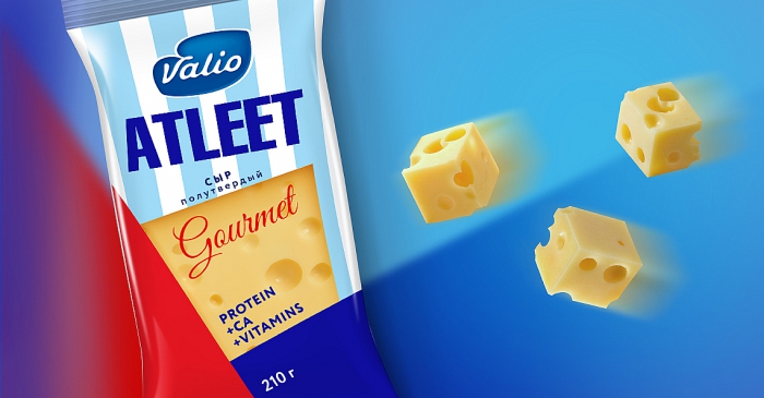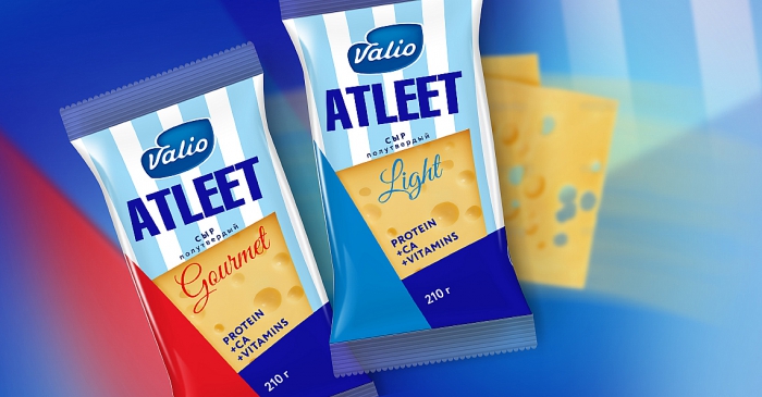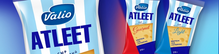 Valio возвращает на российский рынок сыр Atleet. Творческая команда агентства DS 1 разработала новый дизайн упаковки продукта. Перед агентством стояла задача создать яркий и динамичный образ. Atleet должен ассоциироваться со спортом и современным образом жизни. В качестве основного цвета команда DS 1 предложила использовать сине-голубую гамму, которая присутствовала на упаковке в прошлом.