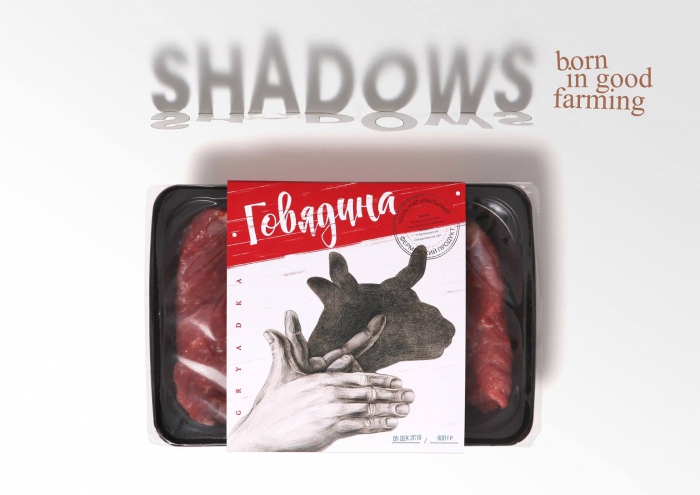 Оригинальную упаковку фермерского мяса «Грядка» представило креативное брендинговое агентство «Gordost». Изображенные на упаковке ладони складываются в легко узнаваемые силуэты животных — так дизайнеры акцентируют внимание на ручном труд фермеров.