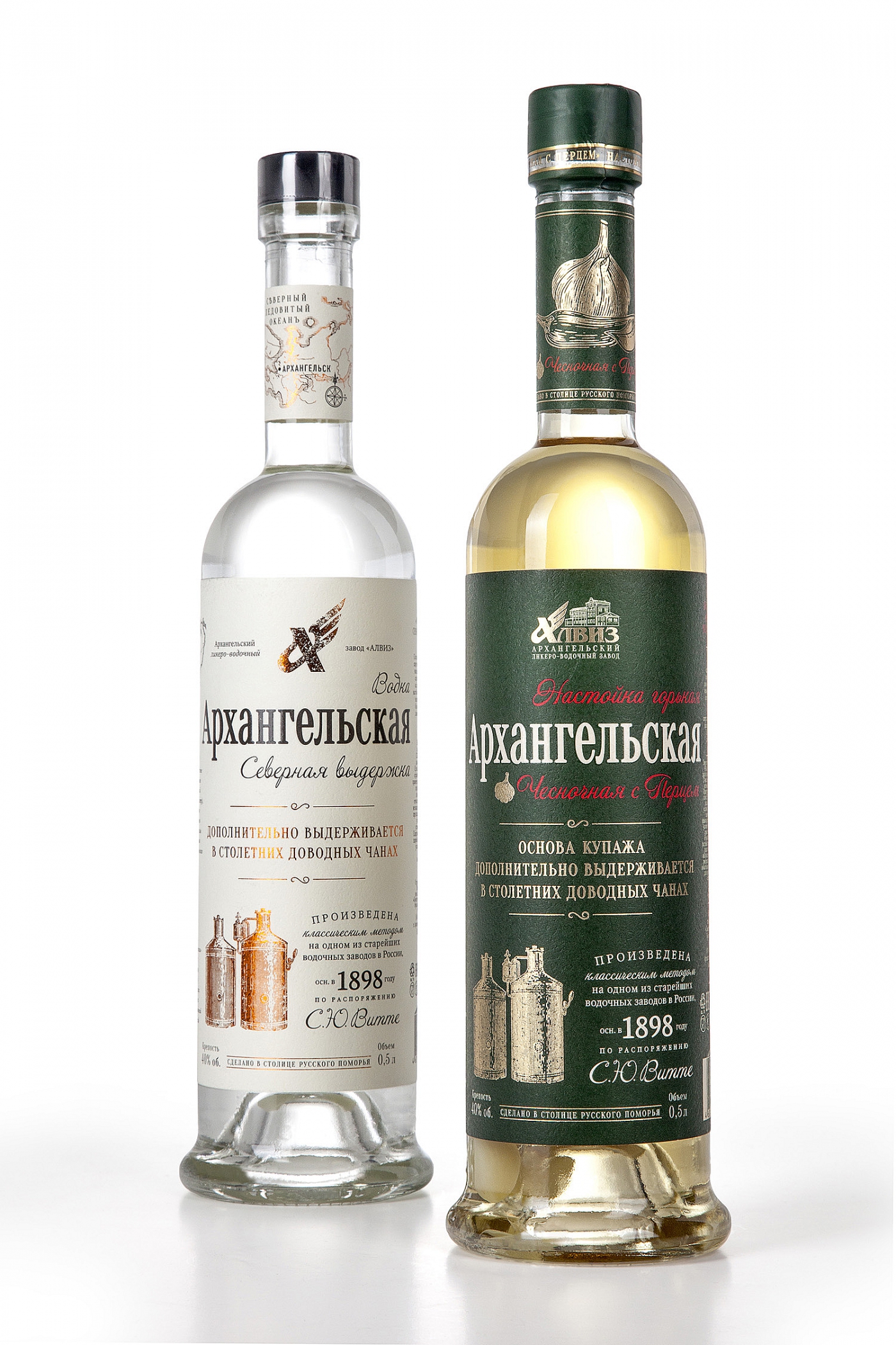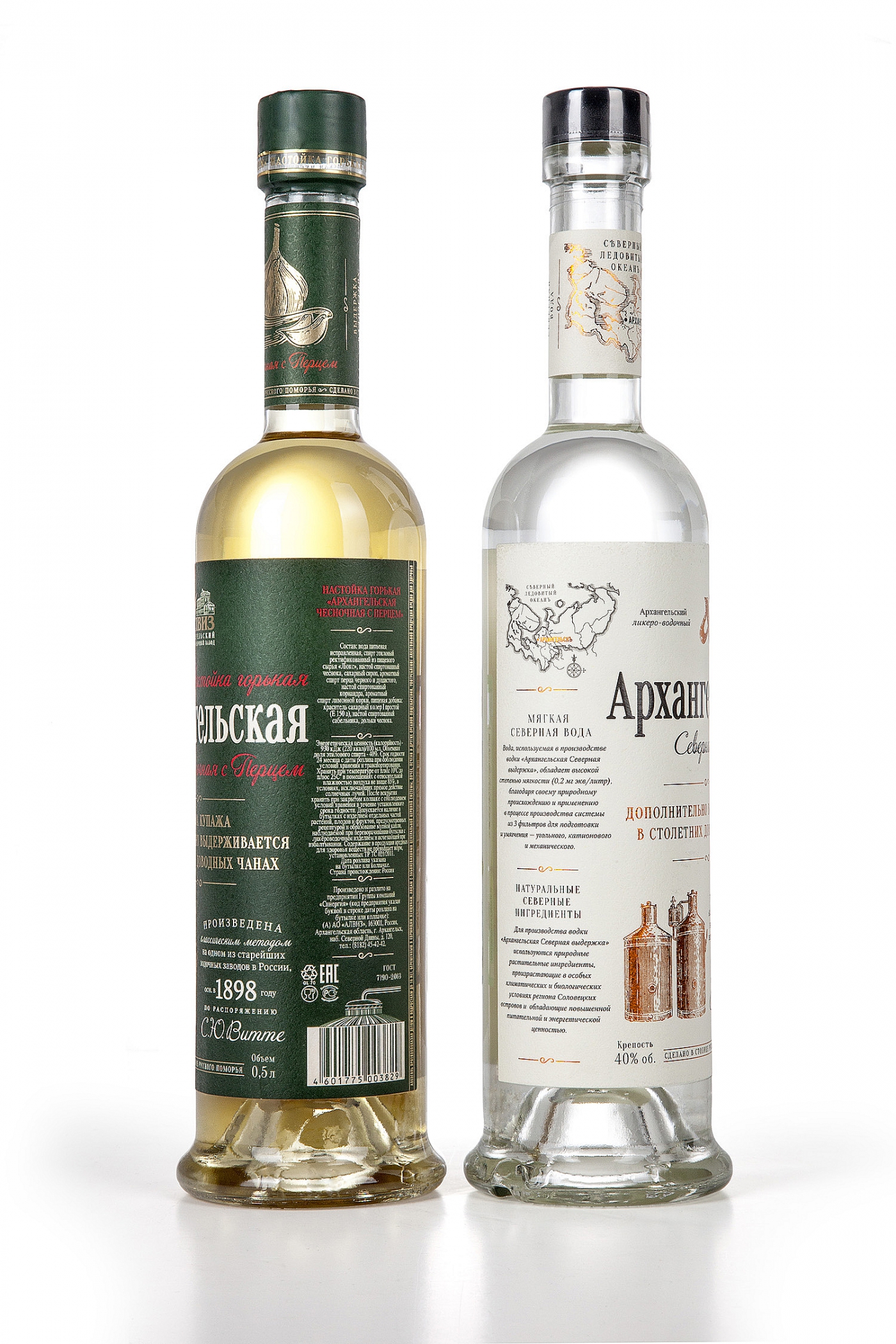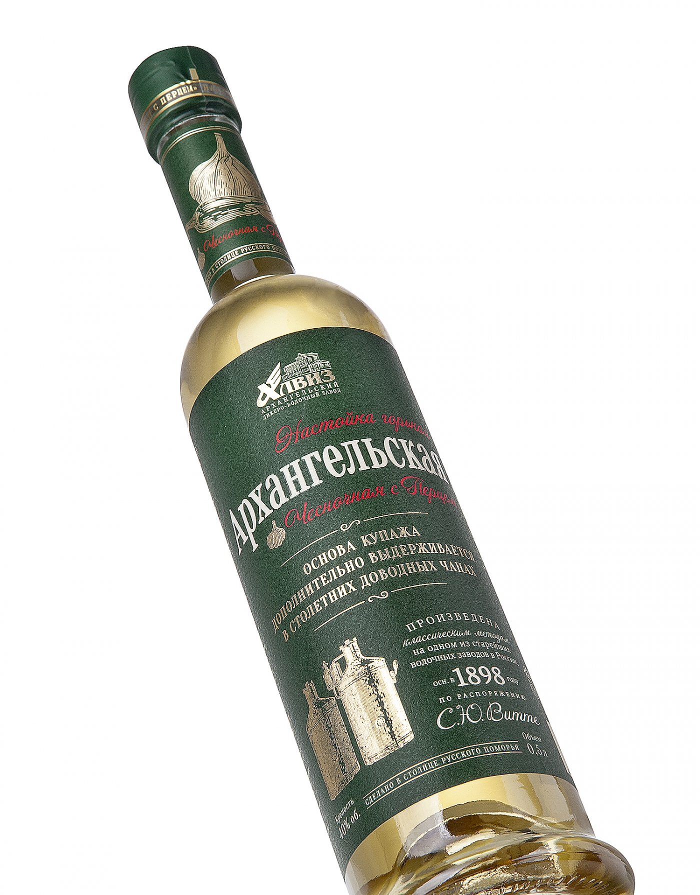 Московская студия бренд-дизайна Uniqa Creative Engineering совместно с компанией «Синергия» разработала дизайн горькой настойки «Архангельской Чесночной с Перцем» для бренда «Архангельская Северная Выдержка». В оформлении бутылки используется медное тиснение на плотной винной бумаге, сложные шрифтовые композиции, изображения чеснока с перцем в стиле гравюры.
