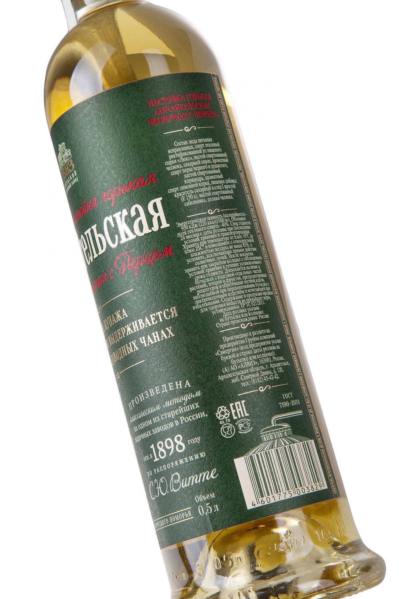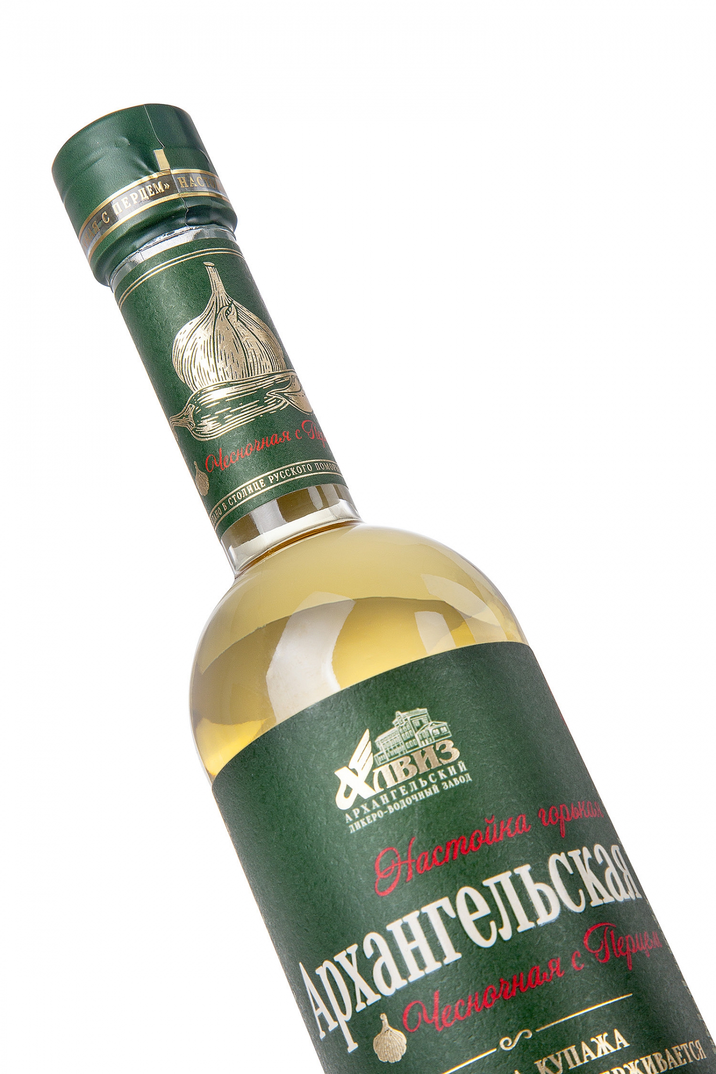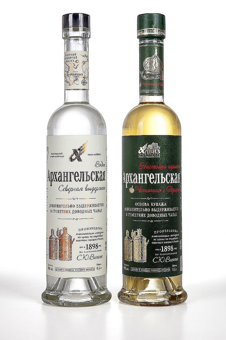 Московская студия бренд-дизайна Uniqa Creative Engineering совместно с компанией «Синергия» разработала дизайн горькой настойки «Архангельской Чесночной с Перцем» для бренда «Архангельская Северная Выдержка». В оформлении бутылки используется медное тиснение на плотной винной бумаге, сложные шрифтовые композиции, изображения чеснока с перцем в стиле гравюры.