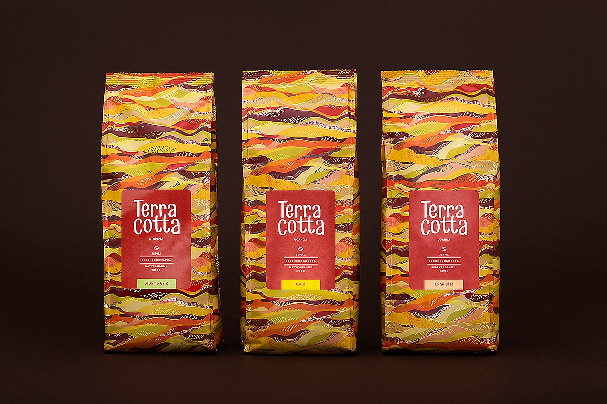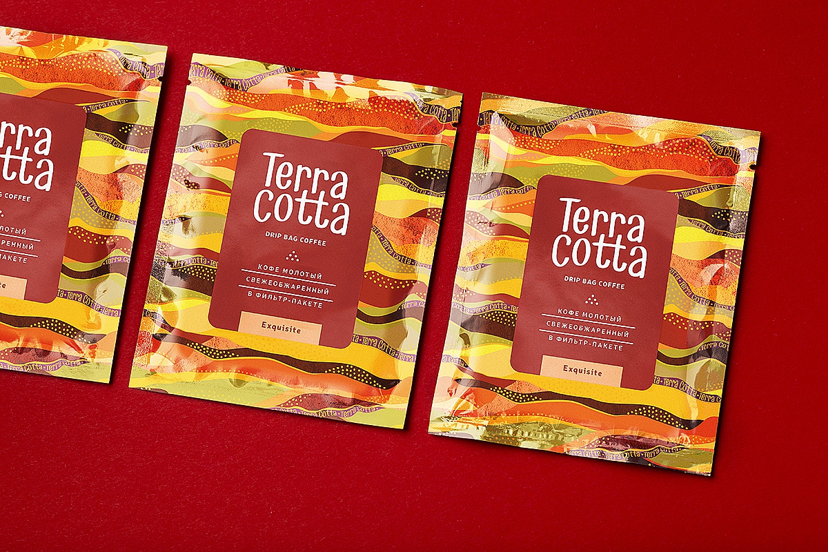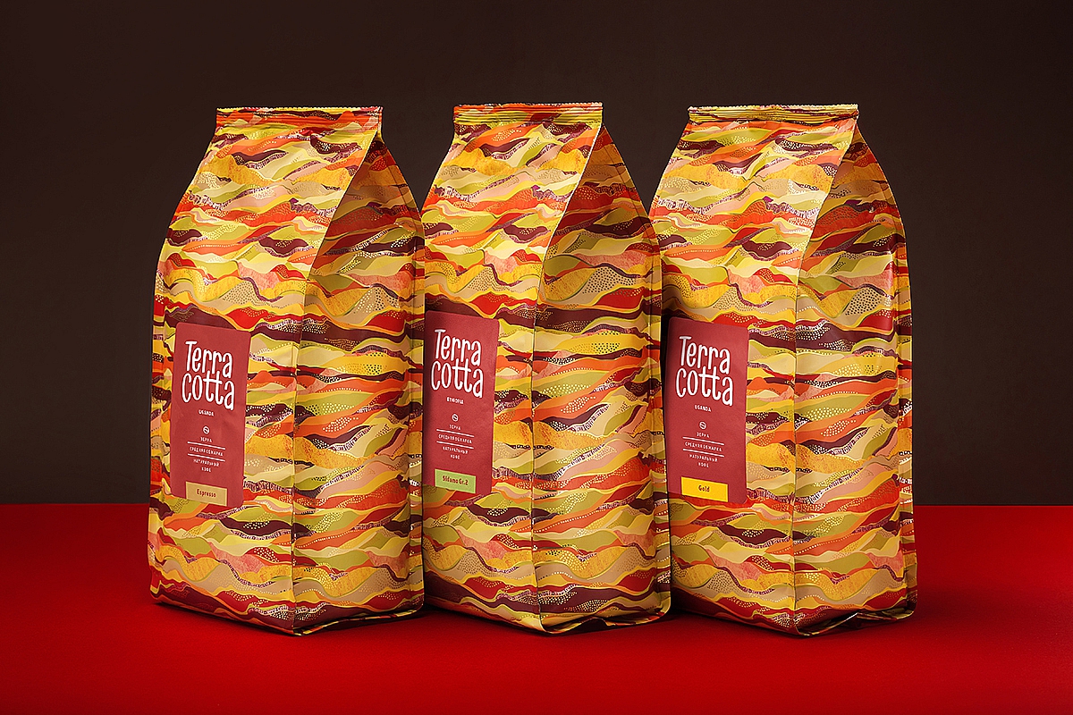 Команда Fabula Branding вывела на рынок новый бренд кофе для ООО «Компания Валео Вита». Агентство разработало торговую марку (нейминг, логотип и дизайн упаковки) для кофе TerraCotta. В основе дизайна – паттерн, стилизованный под изображение слоев почвы. Так в агентстве решили обыграть название бренда (terra – с латинского «земля»), а также графически изобразить пластику кофейных плантаций.