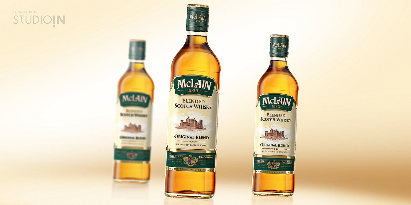 Ещё одна работа команды STUDIOIN — редизайн виски McLAIN. Первоначальный внешний вид виски не был современным, актуальным и на фоне конкурентов попросту терялся на полке. Команда проекта решила сделать акцент на шотландском происхождении виски, использовав в дизайне сочетание зеленого цвета, золота и геральдической символики.