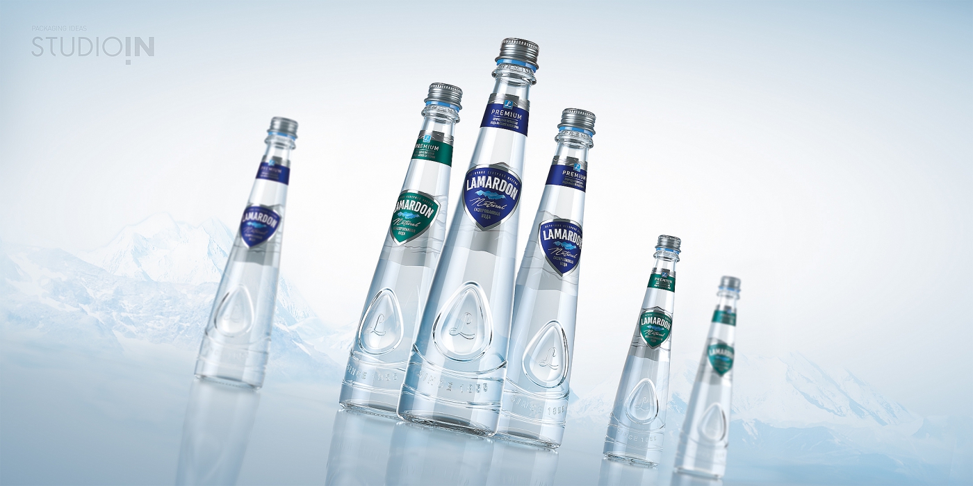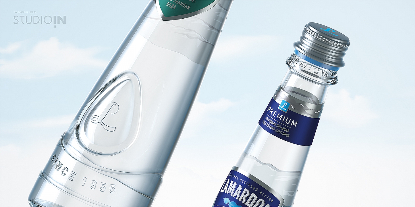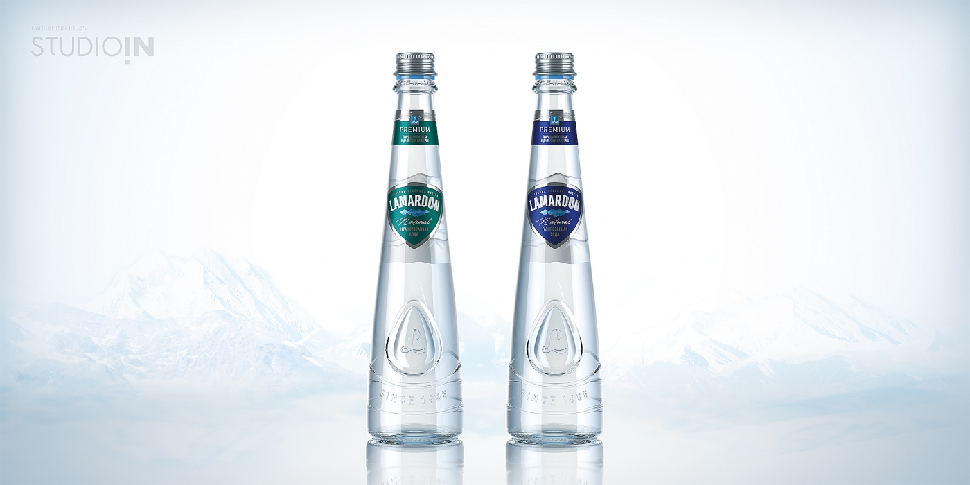 Еще один бренд питьевой воды, разработанный командой STUDIOIN — «Ламадрон». Чтобы передать ледяную прозрачность воды, дизайнеры представили вытянутую бутылку с рельефными граями.