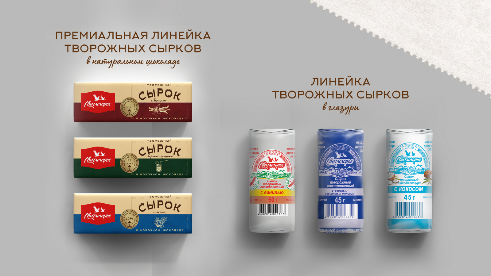 Агрохолдинг «Русское молоко» (бренд «Свитлогорье») выпустил обновлённую серию творожных сырков — классическую линейку продукции в глазури стали производить в бельгийском шоколаде. Редизайн проводила команда брендингового агентства Labelmen.