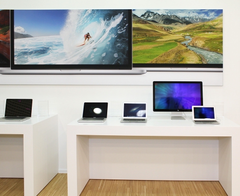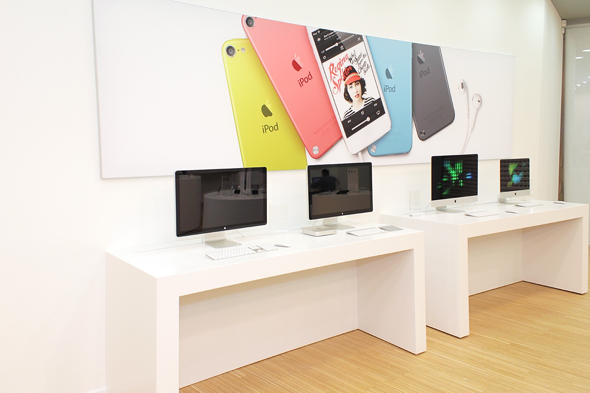 Флагманская точка продаж продукции Apple - C-store - расположена в центре столицы на Тверской улице, д.6. Площадь нового магазина составляет порядка 150 кв.м. В нем представлены все категории техники Apple, сертифицированные для продажи на территории России - компьютеры iMac, ноутбуки MacBook, смартфоны iPhone, планшетные компьютеры iPad и большой выбор аксессуаров.