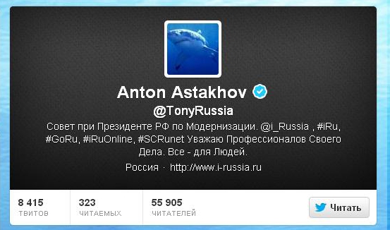 Скриншот страницы в Twitter Антона Астахова