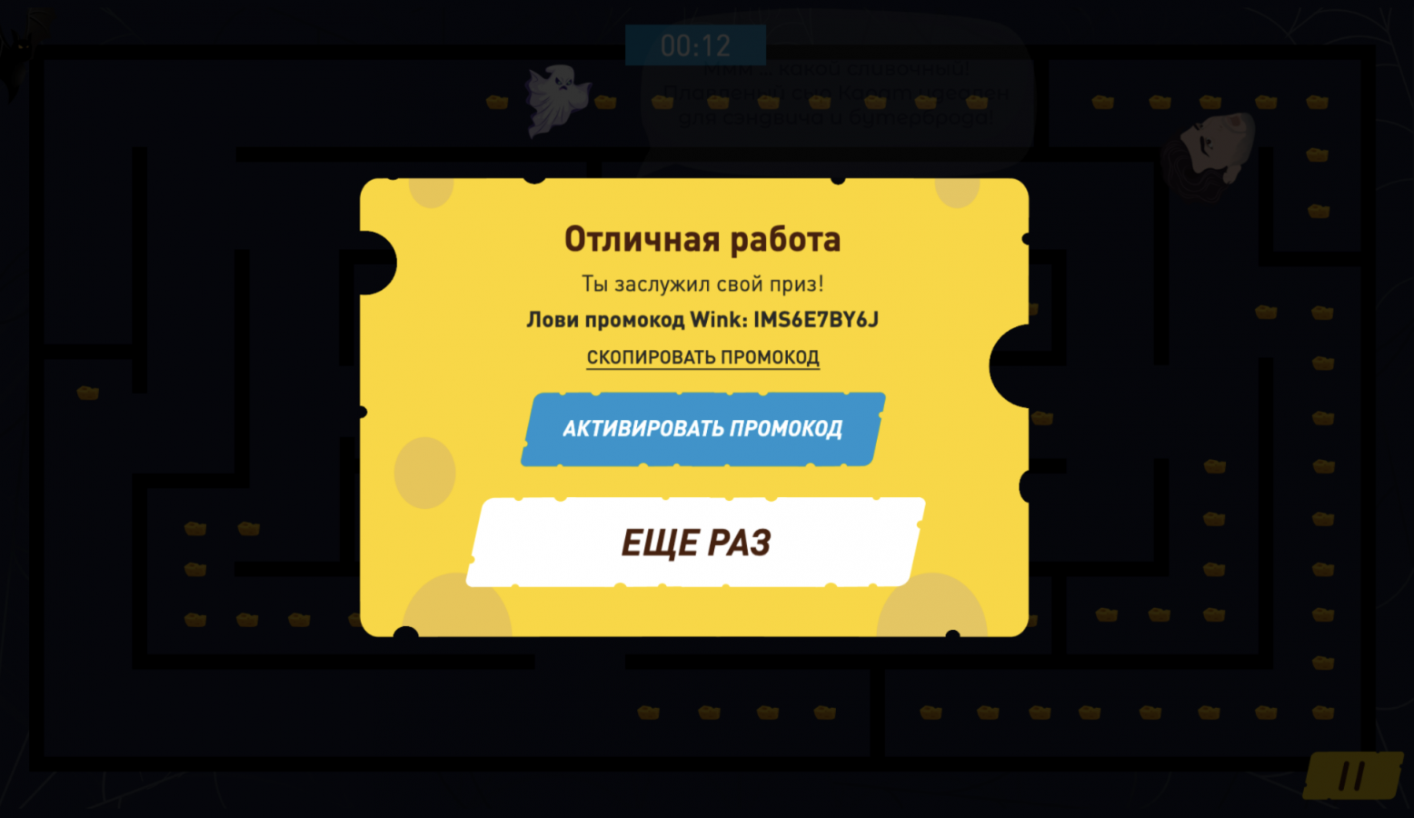 Аудитория шоу присоединялась к онлайн-игре благодаря анонсирующим роликам со звездами проекта, которые приглашали на специальную страницу сайта СТС от бренда «Карат». Пользователь переходил из эфира СТС по специальному QR-коду, попадал на сайт телеканала, а затем в игру. В течение одной минуты игровой персонаж должен был убегать по лабиринту от привидений и собирать три вида сыра «Карат»: в слайсах, в ванночке и в треугольниках. Каждая упаковка сыра была бонусом. Она помогала игроку пройти уровень и получить специальный приз — подписку онлайн-кинотеатра.