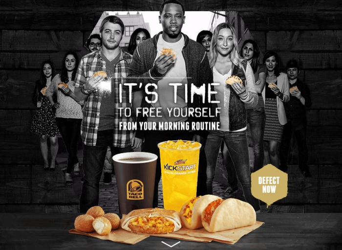 Кроме того, Taco Bell разместила принты на улицах Нью-Йорка и Лос-Анджелеса, запустила два промо-сайта: RoutineRepublic.com и BreakfastDefectors.com. Пользователям предлагается участвовать в конкурсе — придумать креатив с шестиугольником, символом отступников, после чего разместить фотографию в соцсетях.
