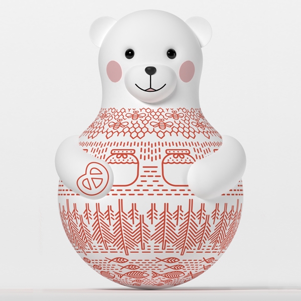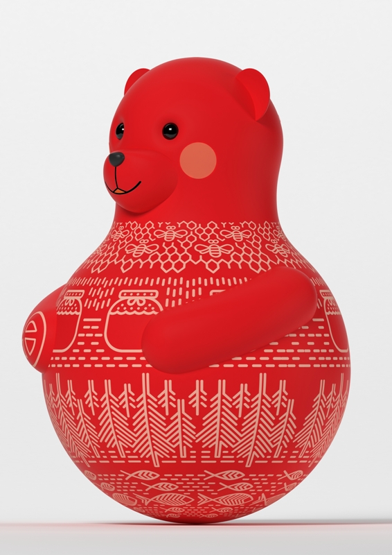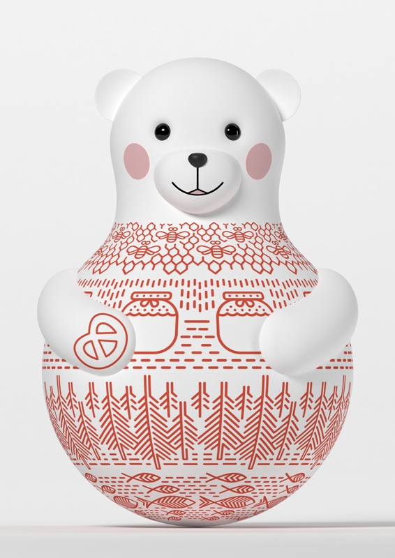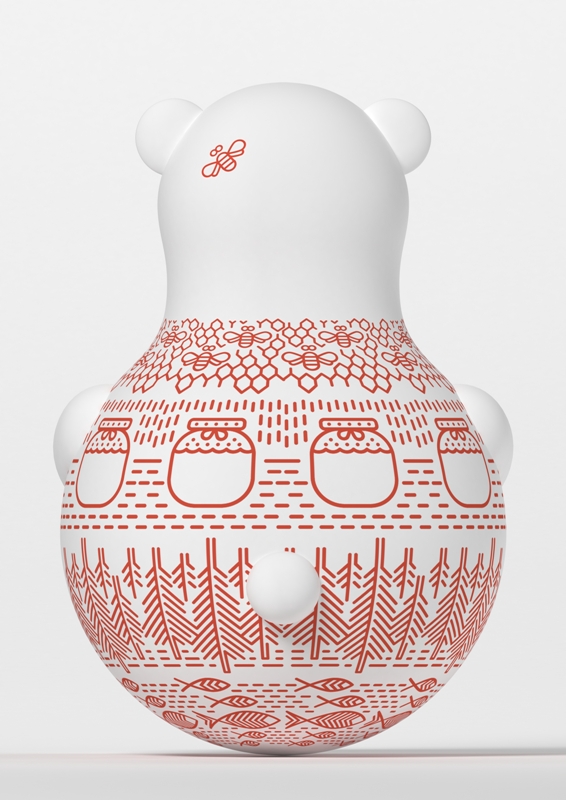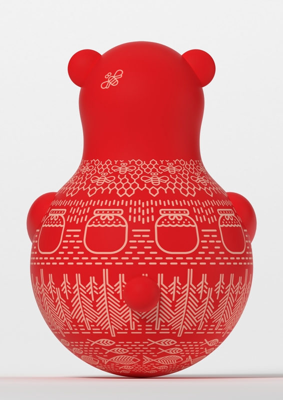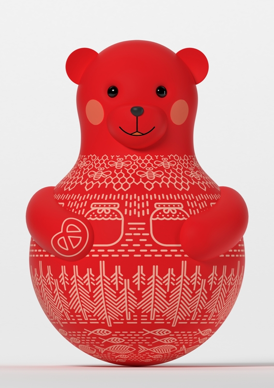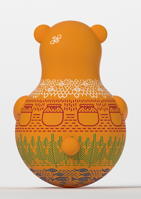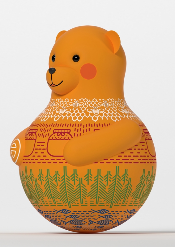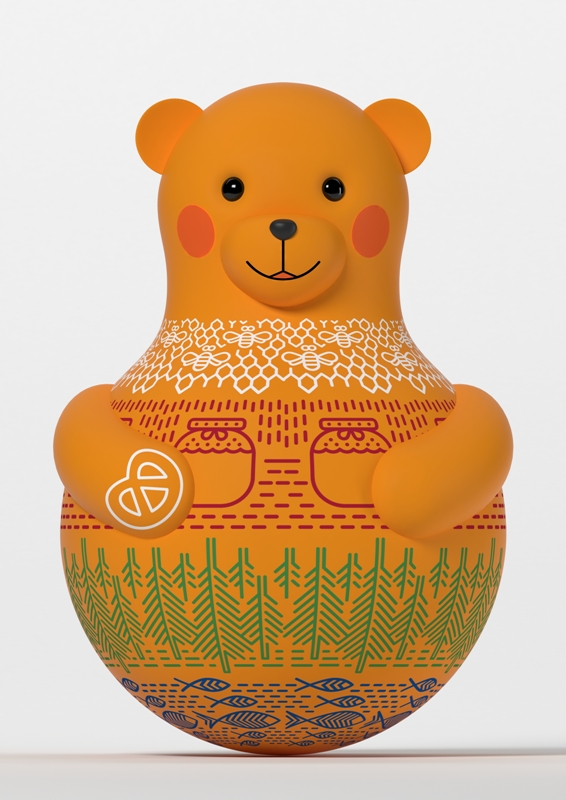 Виталий Ставицкий рассказал в беседе с Sostav.ru, что его работа - это симбиоз медведя, матрешки и любимой многими игрушки детства неваляшки. В качестве оформления талисмана дизайнер использовал официальную символику павильона россии на «ЭКСПО-2015», которая была разработана командой агенства Eventica Communications.