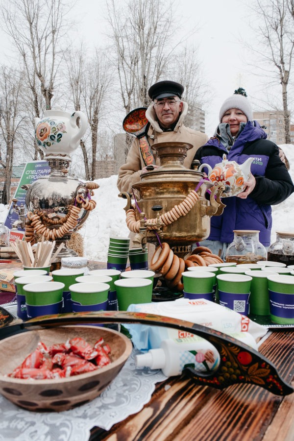 Параллельно привлекли чайного мастера: он топил самовары на дровах и угощал гостей горячим чаем. Так посетители могли согреться и весело провести время, пока ждали своей очереди на катание.
