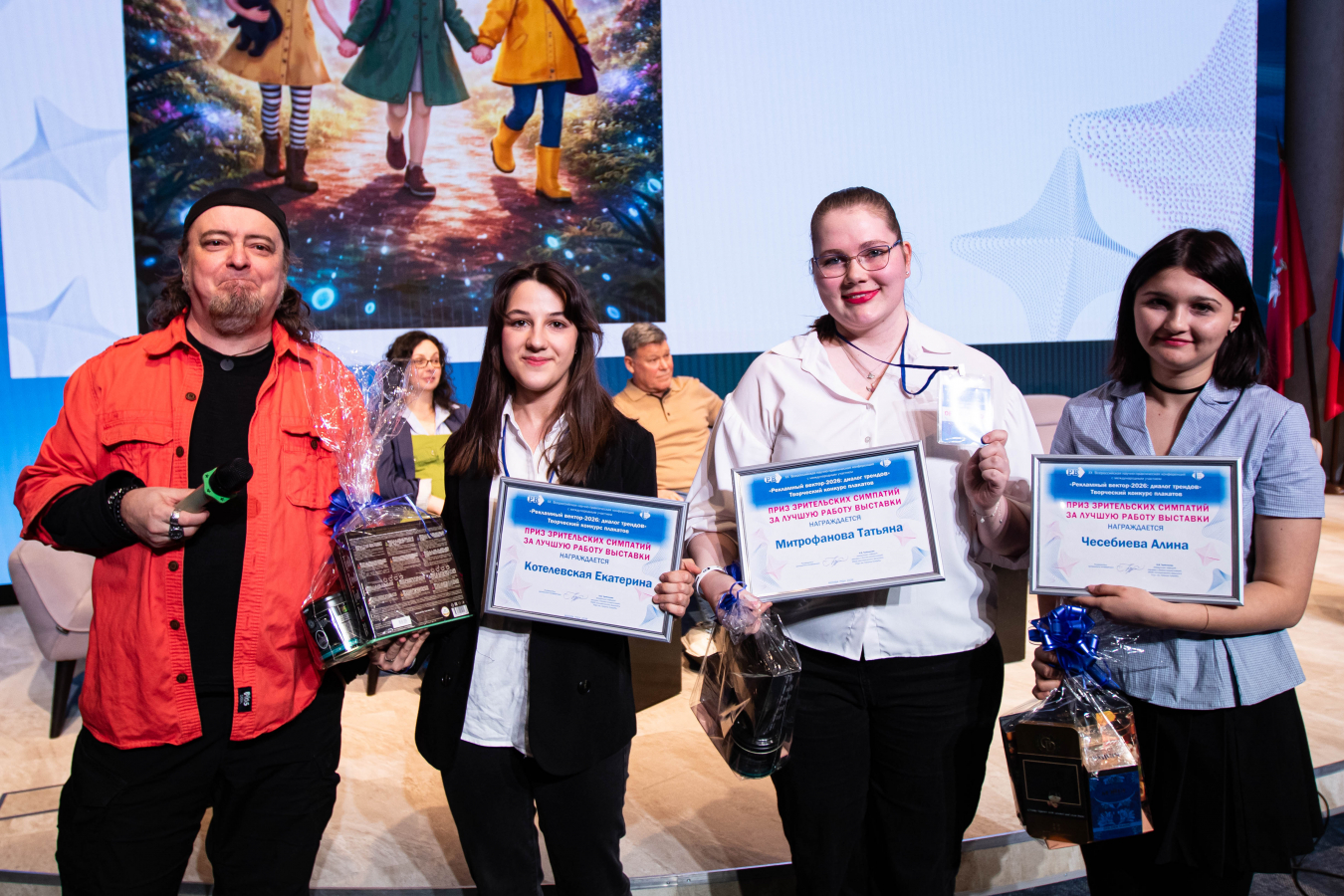 Соревновательная часть «Рекламного вектора-2026» выдалась не менее насыщенной: прошли конкурсы научных статей, видеоподкастов, плакатов и нейрокреатива. Оргкомитет получил рекорд — 234 статьи и подкаста, 175 плакатов, 342 нейроплаката и нейровидеоролика. Среди победителей — представители БГУ (Беларусь), Almaty Management University (Казахстан), Шаньдунского профессионального университета иностранных дел (КНР), НИУ ВШЭ, СВФУ, СПбГУ, СТГУ им. Юрия Гагарина и других вузов.