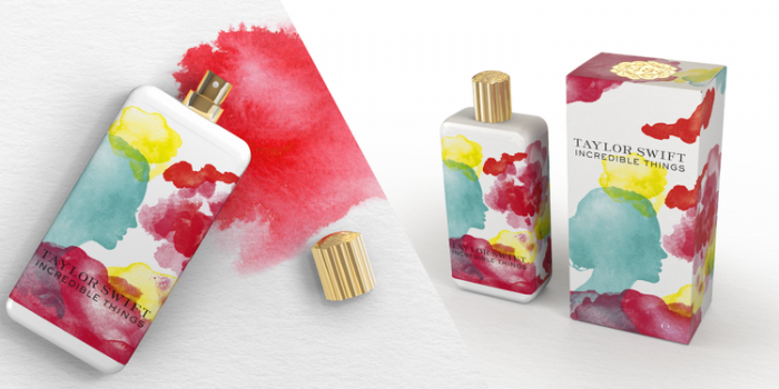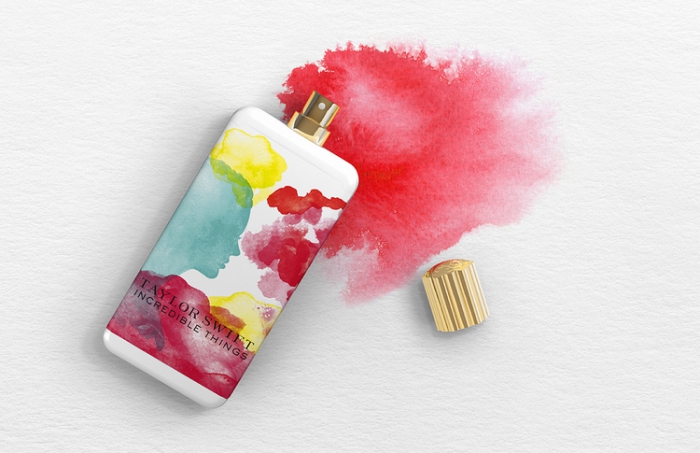 Американская певица Тейлор Свифт запустила собственный парфюм под названием «Incredible Things» или «Невероятные вещи». Дизайн аромата поп-исполнительницы выполнен как будто бы акварелью, которую «набросали» поверх ,белого флакона.