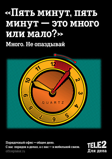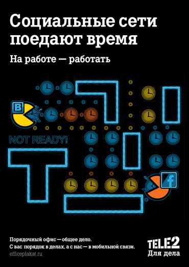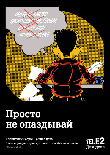 Плакаты в шутливой форме призывают рационально использовать офисные ресурсы – выключать электроприборы, не тратить время впустую, сохранять документы во избежание потерь. Кроме того, Tele2 рассказывает, как можно отучить подчиненного от дурной привычки опаздывать или намекнуть на злоупотребление разговорами «не по делу».