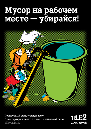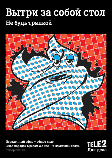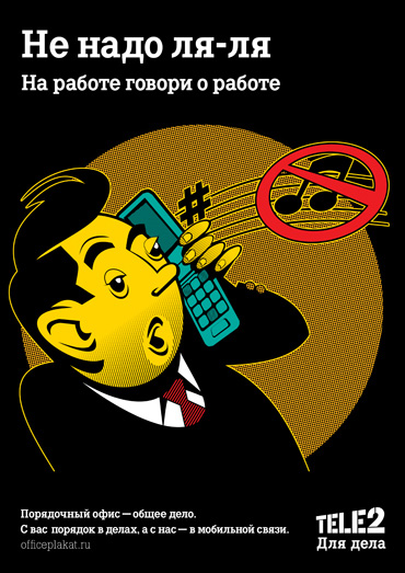 Значительную часть дня современные люди проводят в офисах, где многое может отвлекать от работы и раздражать: коллеги слушают музыку, громко смеются, мусорят или обсуждают по рабочему телефону личные вопросы. Благодаря серии веселых плакатов сотрудники компании смогут избавиться от офисного хаоса и научатся работать эффективнее, считают авторы нового проекта Tele2.