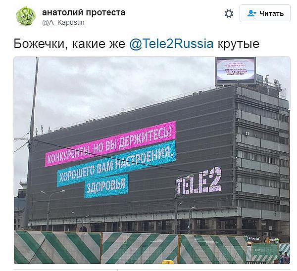 Позже кампания была поддержана наружной рекламой. Пользователи сообщили о появлении билбордов на улицах столицы. Представитель Tele2 Russia Константин Прокшин подтвердил TJ подлинность фотографии и отметил, что за пределы Москвы активность не выйдет.