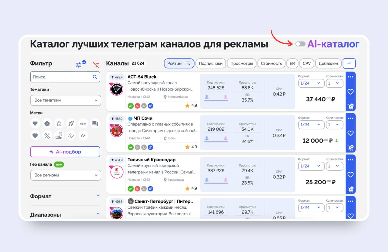 Telega.in рассказали Sostav, что Telega AI анализирует стиль, тематику, реакцию аудитории и эффективность прошлых нативных рекламных кампаний в разрезе каждого канала и использует эти знания для персонального подбора каналов для размещения рекламы.