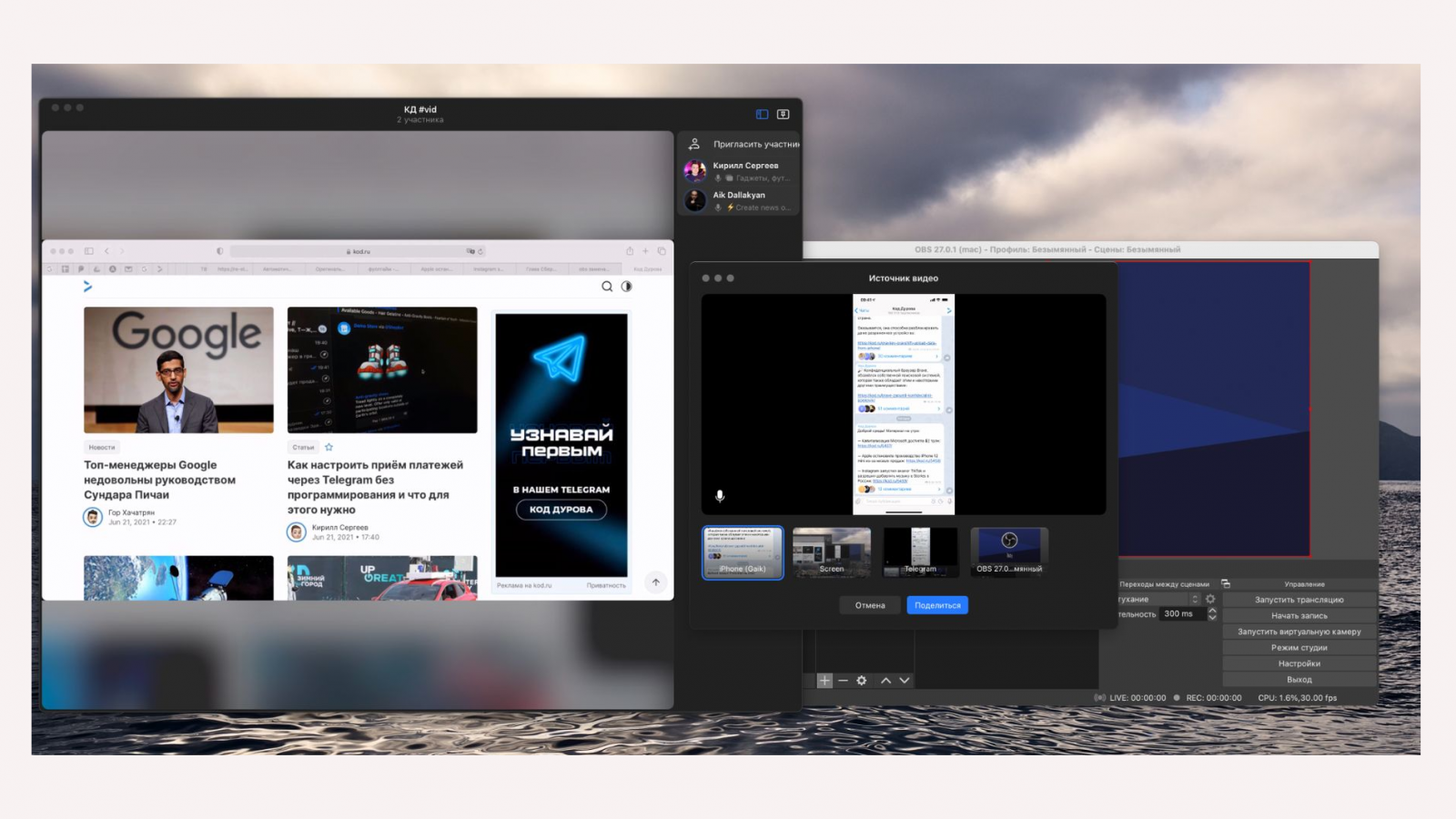 В новой бета-версии клиента Telegram 7.8 для операционной системы macOS появились дополнительные возможности видеочатов, которые позволят мессенджеру стать платформой для стриминга, выяснил «Код Дурова». В ней появилась поддержка виртуальных камер с использованием OBS — открытой платформы для потокового вещания.
