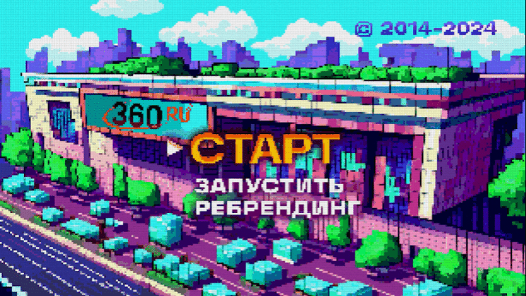 Телеканал поменял логотип 2 года назад, но его решили доработать и сделать более цифровым. Теперь после цифр 360 с орбитой располагаются .ru с пикселять в конце букв. Именно пиксель стал ключевым форматным элементом ребрендинга. А ещё 360.ru — это новый адрес нового сайта компании. Новый стиль должен перенести зрителей из привычного телевизионного мира в мир диджитал с его узнаваемыми деталями: играми, кодингом, маркерами и геотегами.