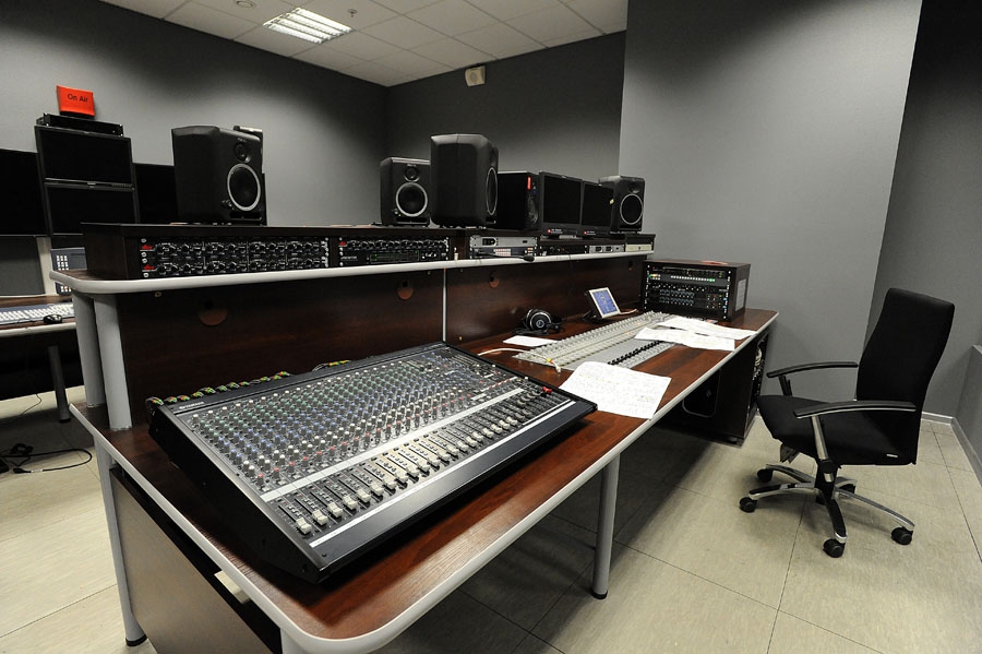 - У нас есть информационная студия – самая большая в России, составляет порядка 500 квадратных метров. В ней одновременно находится и утренняя студия, и новостная, и open space, где работают редакторы, шеф-редакторы, выпускающая бригада – они постоянно взаимодействуют, и порой легче подойти к ведущему и дать ему лист бумаги, если появилась срочная новость.