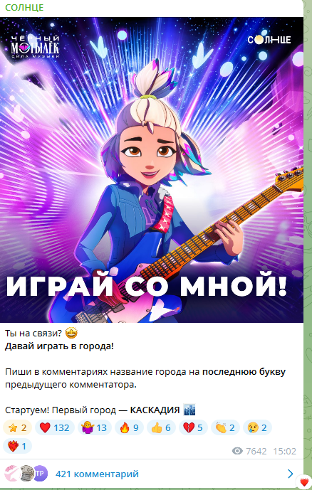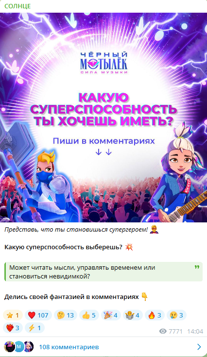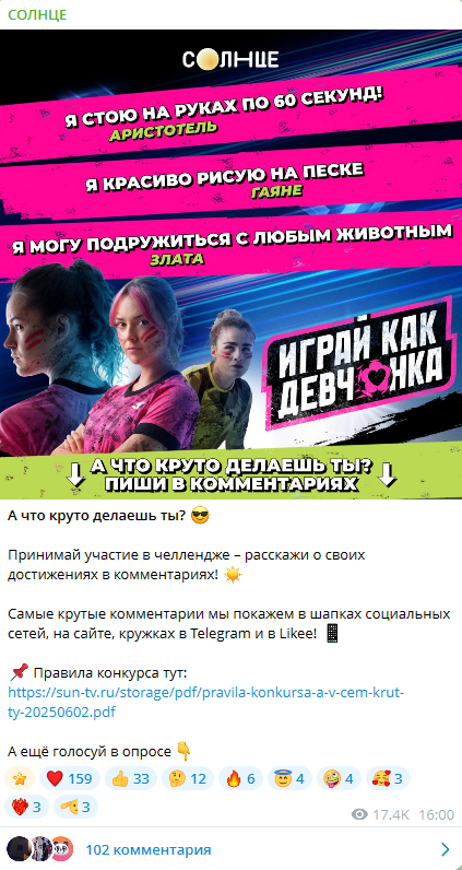 В этот момент мы приняли ключевое решение: Telegram «Солнца» — это не просто площадка, а комьюнити, и работать с ним нужно по другим принципам. Модерация перестала быть второстепенной задачей и стала стратегическим инструментом, который мы внедрили в маркетинг. Появился фокус на опросы, игровые механики и креативы, завязанные на реакции аудитории.